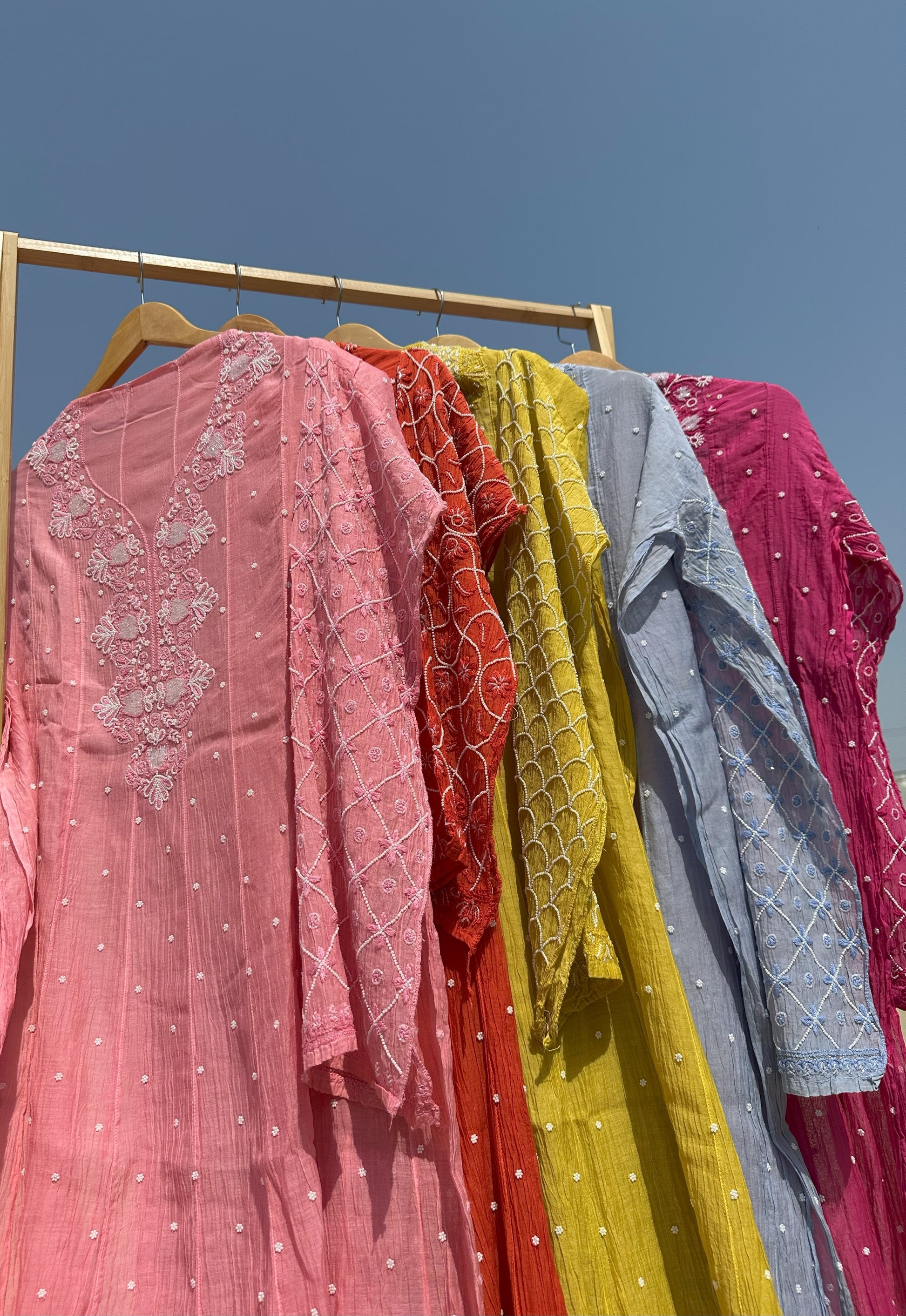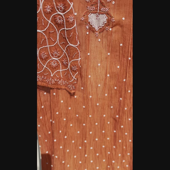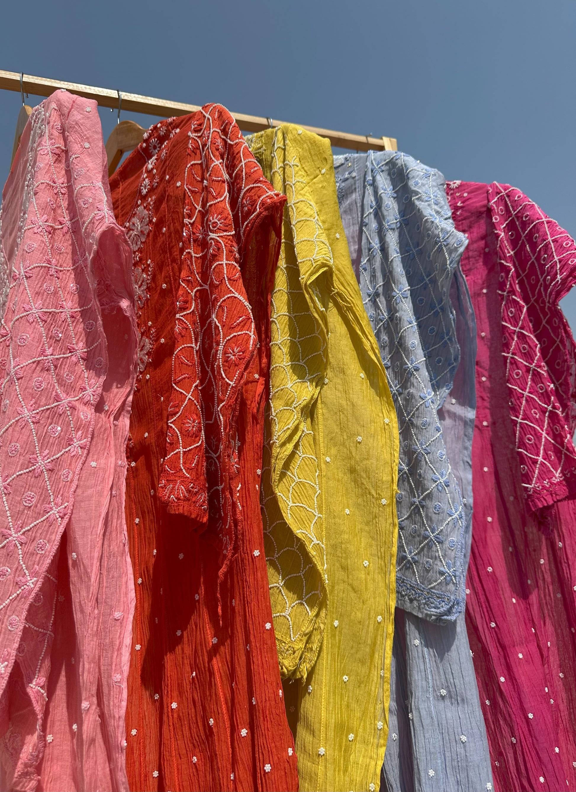 • Embroidery: Handcrafted Chikankari work with intricate floral and paisley motifs