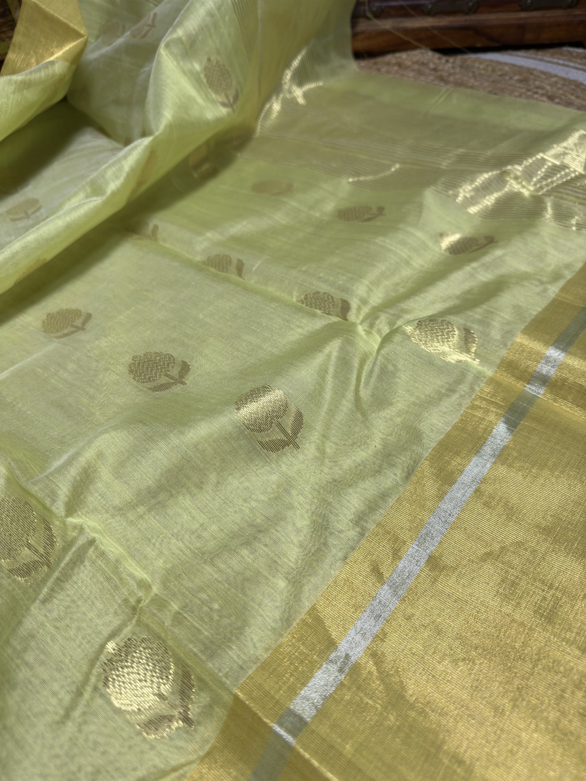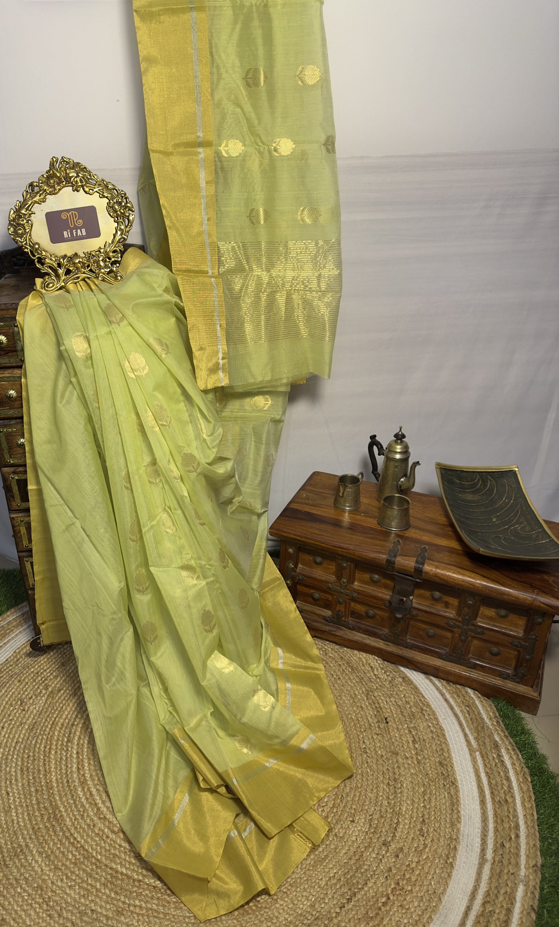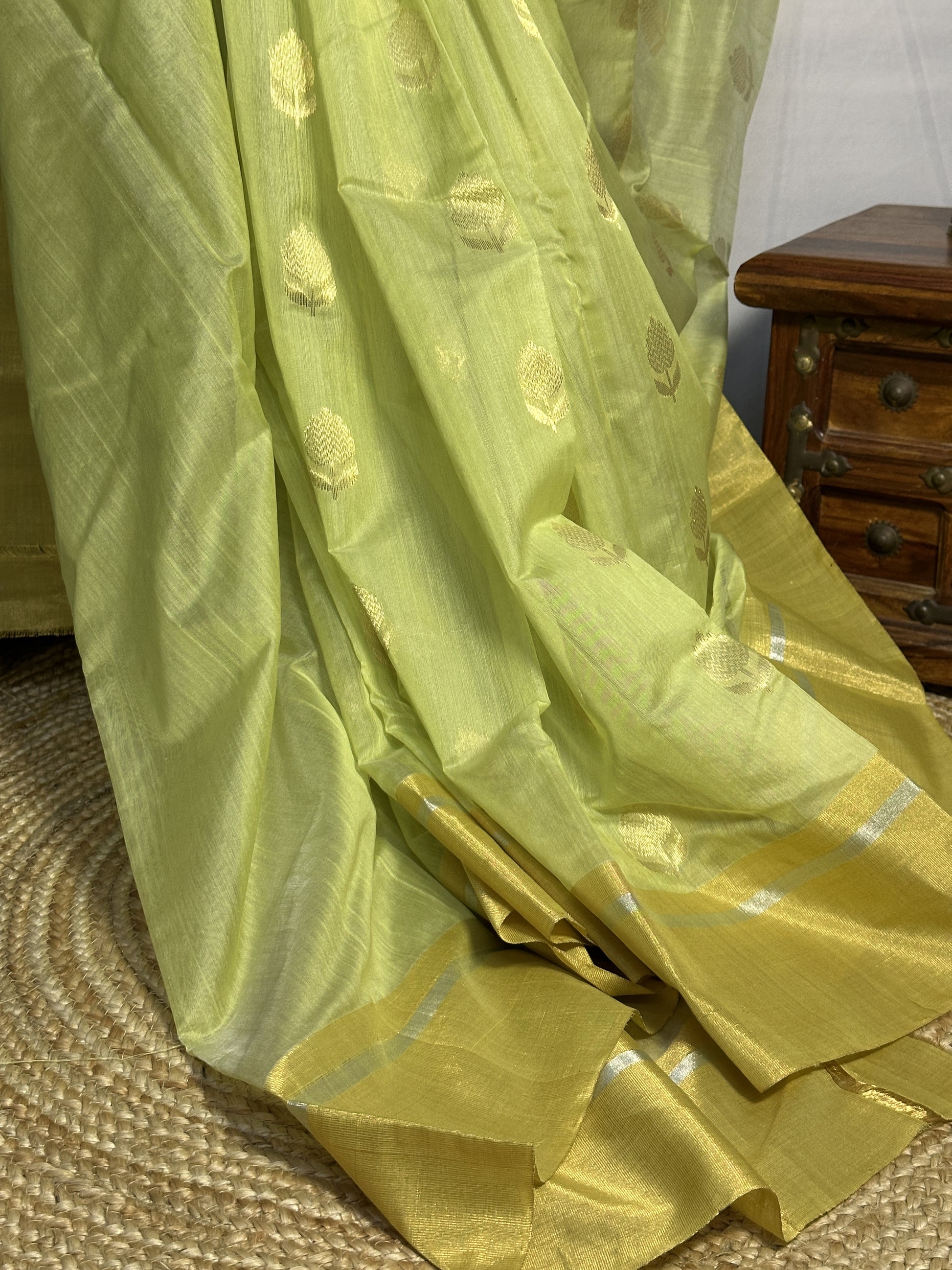 Embrace the enchanting allure of the Panna Saundarya Chanderi Silk Saree—a celebration of beauty, tradition, and elegance. Let this saree be a statement of your unique style and a tribute to the timeless charm of Indian heritage.